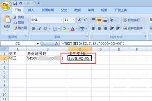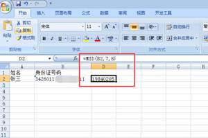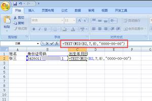 以2007版EXCEL为例,提取下图中身份证号码中的出生年月