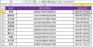 经过这样的公式后,就有了日期的格式“1983-10-08”,但是这样的结果还不是真正的日期格式。经过“MID函数”“TEXT函数”等函数计算后得出的数值都是文本格式,一般情况下,不能参与后续的计算处理。
