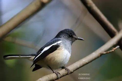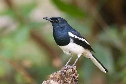 鹊鸲(学名:Copsychus saularis):为雀形目、鹟科、鹊鸲属的鸟类,体长约21厘米,嘴形粗健而直,长度约为头长的一半或比一半略长;尾呈凸尾状,尾与翅几乎等长或较翅稍长;两性羽色相异,雄鸟上体大都黑色;翅具白斑;下体前黑后白。但雌鸟则以灰色或褐色替代雄鸟的黑色部分。