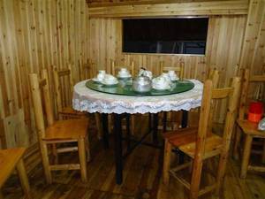 小憩了一会,就起来活动了。这时候才发现,夜幕已经开始慢慢降临了。这时候肚子也开始抗议了,毕竟经过了一夜的奔波,早就饿了。我和饥肠辘辘的肚子在大街上寻觅可以给他提供食物的地方。在来之前就听过很多关于凤凰的特产,血粑鸭,姜糖……但是这些都是一些小吃,并不能满足此刻如此饥渴的我。继续沿着大街往前走,发现一家小餐馆里面人气甚是旺,就顺势走了进去。进去一看,发现宾客落座几乎已满,就举步上了二楼,视线果然不错。这家小餐馆的布局也是极具特色的,木质的椅子和桌子,唯一的缺点就是价格有点小贵,碗筷也要钱。