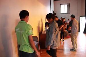 测试方法:男生用高40厘米台阶;女生用高35厘米的台阶,做踏台上、下运动测验前受试者作轻度的准备活动,主要是活动下肢关节上、下台阶(或凳子)的频率是30次/分节拍器的节律为120次/分(每上、下一次是四动)。
