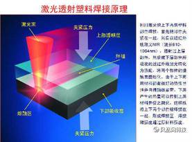 3.激光焊接:20世纪70年代,激光开始被应用到塑料焊接上。它的原理是将激光产生的光束(通常存在于电磁光谱红外线区的集束强辐射波)通过反射镜、透镜或光纤组成的光路系统,聚焦于待焊接区域,形成热作用区,在热作用区中的塑料被软化熔融,在随后的凝固过程中,已融化的材料形成接头,待焊接的部件即被连接起来,通常用于PMMA、PC、ABS、LDPE、HDPE、PVC、PA6、PA66、PS等透光性好的材料,在热作用区添加碳黑等吸收剂增强吸热效果。塑料激光焊接的优点较多:焊接速度快、精度高;自动化、精密数控容易实现;成本相对较低。因此,塑料激光焊接技术在汽车、医疗器械、包装等领域得到了比较广泛的应用。