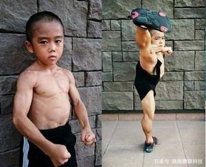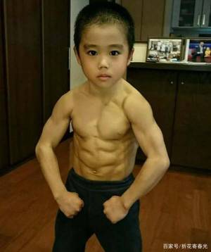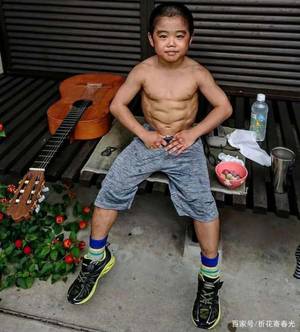 这个男孩名字叫做井隆星,看他的长相会感觉它非常的呆萌和可爱,可能很多人会觉得他是一个普普通通的小朋友,但是没有想到脱掉上衣之后的他,一身的肌肉,很多成年人都比不过。