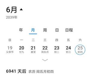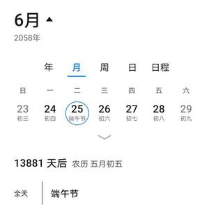 比如,五月初五端午节和公历日期6月25日,在2020年对应在一起,之前的2001/1982年都是这样的对应,以后2058年也是这样的对应,但是2039年不是这样对应,因为这一年是闰五月。