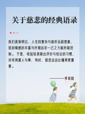 语录因为短,且富有哲理或者内涵,所以才能直击人心,令人顿然开悟!小编特为您整理《李筱懿经典语录》,请您笑纳!李筱懿经典语录1、所有的爱情,都基于欣赏,很难想象有人会爱上自己轻视的人!真正爱你的那个人关于慈悲的经典语录