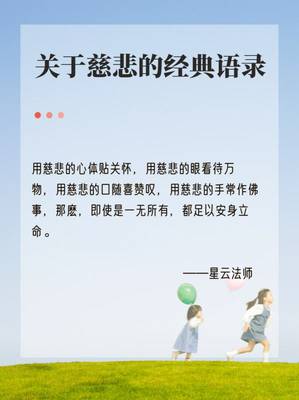 4.用慈悲的心体贴关怀,用慈悲的眼看待万物,用慈悲的口随喜赞叹,用慈悲的手常作佛事,那麽,即使是一无所有,都足以安身立命。——星云法师