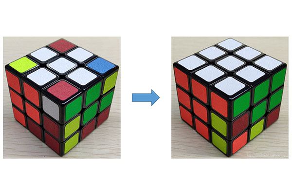1.在上层边块归位时,要注意四周的色向位置。留下一个边块不必马上归位,留作下层边块归位时调整使用。