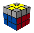 3.操作时,为了不破坏下层已经归位的边块,必须将下层留下的一个未归位的边块垂直对着上层要归位的边块的位置。
