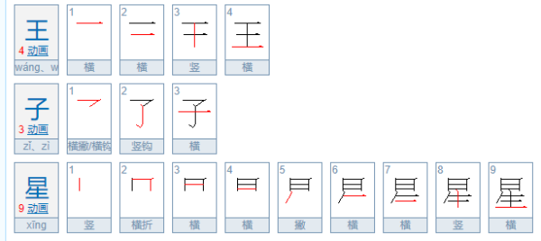 王子星、王子涵、王子豪、王子龙、王子轩、王子健。