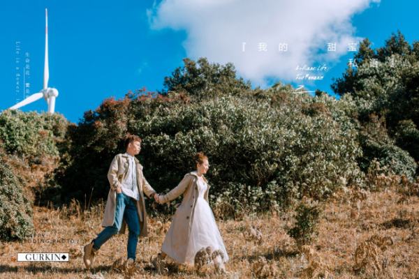 风车山也是一个非常适合拍照的地方,它有白色的风车、高山草地、成群的牛羊,这种田园风光中,拍摄出来的婚纱照,会让人非常舒服,有一种置身于大自然的感觉。