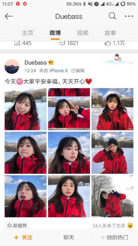 七七,微博名字叫,duebass,是个很好看的妹子。