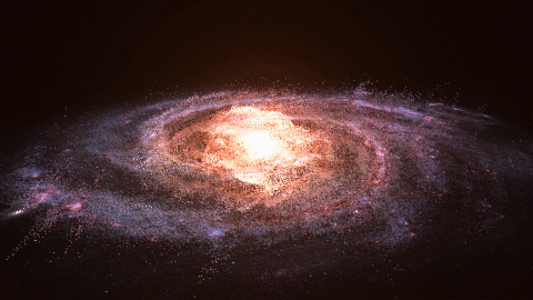 这就是银河系数十亿颗恒星位置测定后建立的3D模型,我们现在可以很清楚的看到核球处是一团恒星,并不是一颗超大的恒星!并且根据银河系的分类,它是属于棒旋星系,中心的核球是一个椭球,它长轴约4~5千秒差距,厚约4千秒差距(1秒差距约为3.26光年),占了整个银河系约10~20%的质量,这样的话大概就对银河系中心这个核球的大小有了一个概念!那么问题来了,整个银河系约包含了1000亿~4000亿颗恒星,即使是围绕核球公转的,那么核球的那么多恒星是围绕什么天体公转的呢?