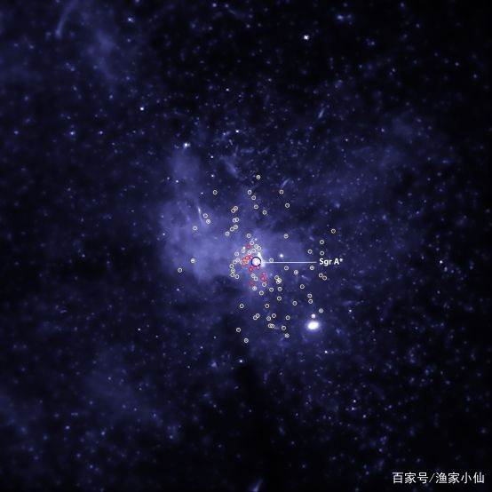 钱德拉X射线太空望远镜发现的银心附近众多X射线源头,中心黑洞Sgr A*的位置已经标记,这些可见光波段难以觅其踪影的黑洞群构成了银心质量的重要来源,而银河系数千亿颗恒星正在围绕这个它们公转,日复一日,年复一年!