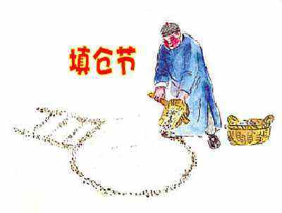 宋代孟元老在《东京梦华录》中载道:“正月二十五,人家市羊彘肉,客至苦留,毕竟而去,名曰填仓。”“填仓”意即填满谷仓。相传北方曾连续大旱三年,赤地千里,颗粒无收。可是,皇帝不顾人民死活,照样强征皇粮,以致连年饥荒,饿殍遍野,尤其在年关,穷人走投无路。这样,给皇帝看粮的仓官毅然打开皇仓,救济灾民,并在正月二十五这天放火烧仓自焚。后人为了纪念这名仓官,每年这天清晨,就用草木灰撒成圆圆的囤形的粮仓,有的还镶上花边、吉庆字样,并在囤中撒以五谷,象征五谷丰登,来表达人们填满仓谷救仓官的深情厚意。这些习俗已经消失,但填仓佳话却世世代代流传下来,提醒人们从这天起清仓扫囤,晾晒种子,整修农具,准备春耕。