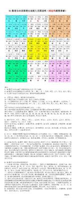 第六个数字()里面是原81数理正确数组,八十一组数字而不是从1—81的数字,每组数字为一卦共八十一组数,因中间带5的(15、25、35、45、55、65、75、85、95、51、52、53、54、56、57、58、59)共十七组数无卦。81组-17组=64组,所以正合64卦。