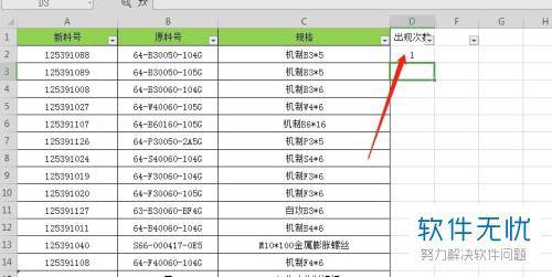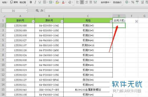2.然后在表格的右侧输入【出现次数】,然后点击下方的空白单元格,如图。