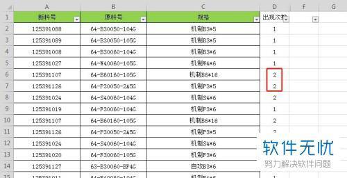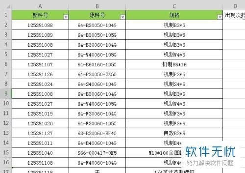 1. 首先,我们在电脑中将一个有数据的表格打开,然后检测第一列重复出现的次数,如图。