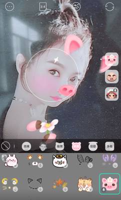 4、最后拍照的时候,镜头前的人物也会随之添加上猪鼻、猪耳朵的效果