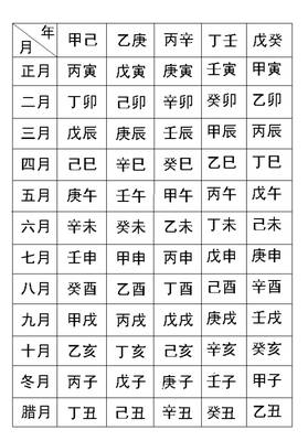 由年天干推月干支年上。如果年干为甲或己,当年正月的干支为丙寅;如果年干为乙或庚,当年正月的干支为戊寅;如果年干为丙或辛,当年正月的干支为庚寅;如果年干为丁或壬,当年正月的干支为壬寅;如果年干为戊或癸,当年正月的干支为甲寅。
