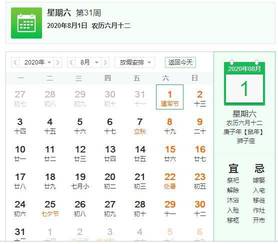 2020年6月1日是星期一,8月1日是星期几?