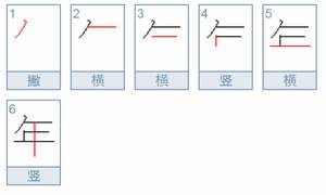 一、年字的笔顺是撇, 横, 横, 竖, 横, 竖,笔顺图是: