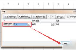 3)数据菜单选项点击“排序”功能,此时弹出拍讯对话框,主要关键字选择需要排序的列(如D列)