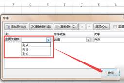 4、在弹出的页面中选择 主要关键字 ,如以性别作为主要关键字,就选择 列B ,点击确定。