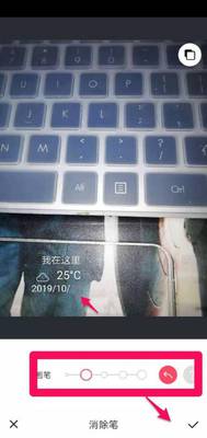 3、进入到美容笔里面,可以适当的调整笔头的大小,然后将日期给消除掉。