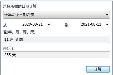 2020年8月21日到2021年8月11一共多少天?