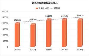 2021年中国机动车交通事故发生数量为211074起,同比下降1.8%;非机动车交通事故发生数量为29969起,同比增长3.2%。