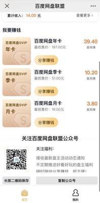 可以关注官方公众号「百度网盘联盟」,两个活动都有详细的介绍和入口,两个活动返的佣金规则一样,入账可以实时看到,一笔也能提现。