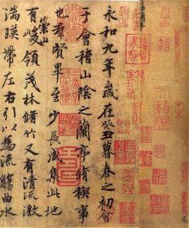 公元353年4月(晋永和九年三月初三日,距今已1667年),时任会稽内史的王羲之与友人谢安、孙绰等四十一人在会稽山阴的兰亭雅集,饮酒赋诗。王羲之将这些诗赋辑成一集,并作序一篇,记述流觞曲水一事,并抒写由此而引发的内心感慨。这篇序文就是《兰亭集序》。并挥写了一篇《兰亭集序》。