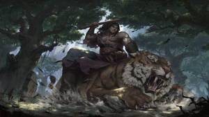 只听"咔嚓"一声,哨棒打在树枝上。老虎兽性大发,又向武松扑过来,武松扔掉半截棒,顺势骑在虎背上,左手揪住老虎头上的皮,右手猛击虎头,没多久就把老虎打得眼、嘴、鼻、耳到处流血,趴在地上不能动弹。