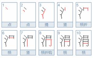 四、涓字的笔顺是点, 点, 提, 竖, 横折, 横, 竖, 横折钩, 横, 横。