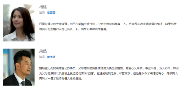 三十岁的"恨嫁女"杨桃(高圆圆 饰)与三十三岁的"恐婚族"果然(黄海波 饰)跌跌撞撞的爱情故事。杨桃是一家四星级酒店的大堂经理,由于在感情中受过伤,三十岁的她依然单身一人。三十三岁的果然在婚姻登记处做离婚登记办事员,父母婚姻的阴影使他成为典型恐婚族。在朋友的撮合下,桃子和果然很不情愿地见了面。没想到,俩人竟然都对彼此留下好感。关闭已久的心门刚刚打开,桃子却发现果然是恐婚男,她愤然撤离。桃子面对现实,毅然投入到相亲大军中。桃子的相亲举动刺激了果然,他使出浑身解数,成功地将桃子的相亲一次次搅黄,自己却还是下不了结婚的决心。果然的父母知道了儿子恐婚的原因,开始反省他们的婚姻,果然也对婚姻有了新的认识高圆圆与黄海波演的电视剧