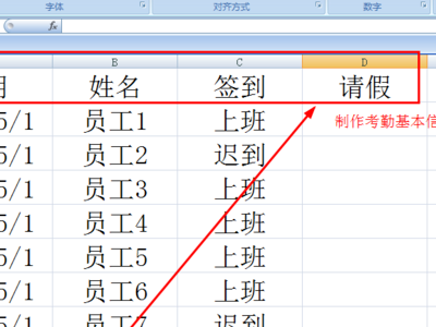 1、首先使用EXCEL新建一个空白文档——在sheet1表格制作员工考勤基本信息:日期、姓名、签到、请假。