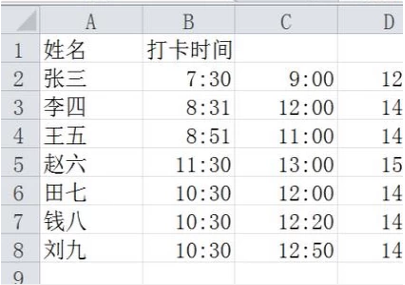 1、首先,将每个人的姓名和相应的打卡时间记录在Excel之中。