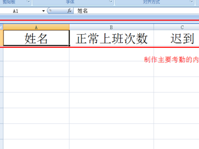 2、接着在sheet2表制作如下图所示的考勤内容:姓名、正常上班次数、迟到、旷工、请假。