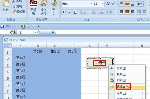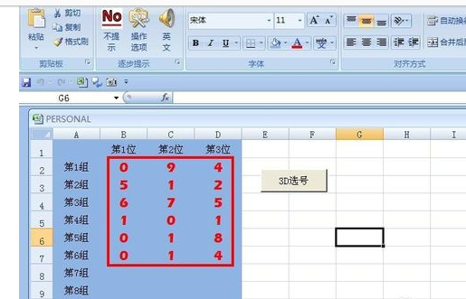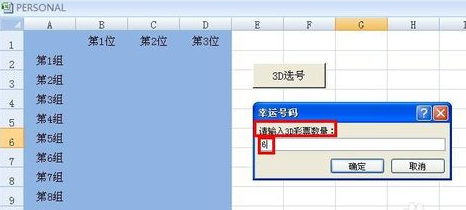 6.右键按钮,选择“编辑文字”,把按钮名称改为“3D选号”,现在单击按钮,弹出对话框“请输入3D彩票的数量”,我们输入“6”,单击确定,会看到6组随机彩票出现了。