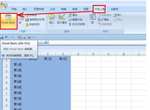 2.单击菜单栏“开发工具”——VisualBasic。打开VBA编辑器,只要在其中输入代码就可以了。