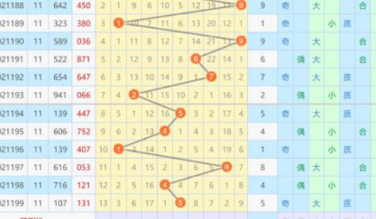 根据对各个和数点位,以及单双点、大小点、除三余数的出号跟踪,当判断某一点位中出希望较大时,即可在相应和数点位中进行选号了。