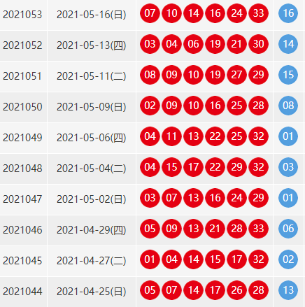 4、2021053-2021044期(期号/开奖日期/中将号码)