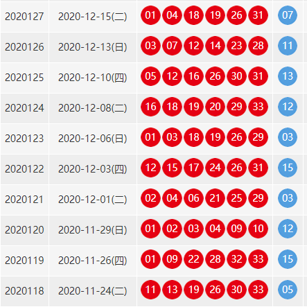 10、2020127-2020118期(期号/开奖日期/中将号码)