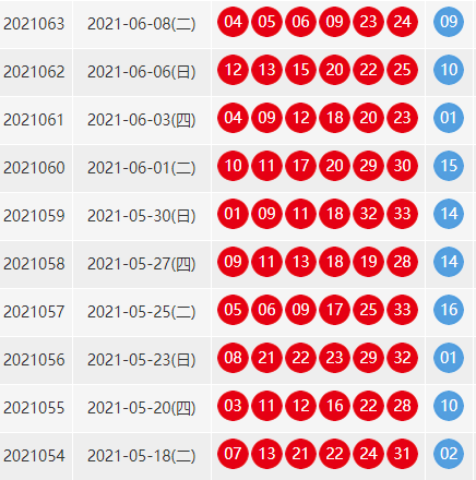 3、2021063-2021054期(期号/开奖日期/中将号码)