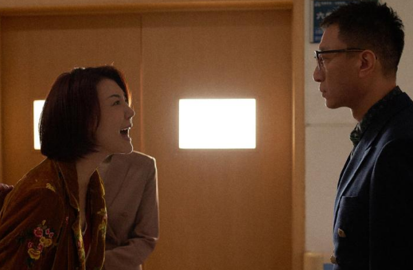 但车晓这个角色应该是怕女儿或是对面的人感受到她的情绪,接过电话一开口语调是上扬的,整一段戏不过三分钟,但车晓的情绪变化非常突出,眼底都带着血丝,表演的非常真实。