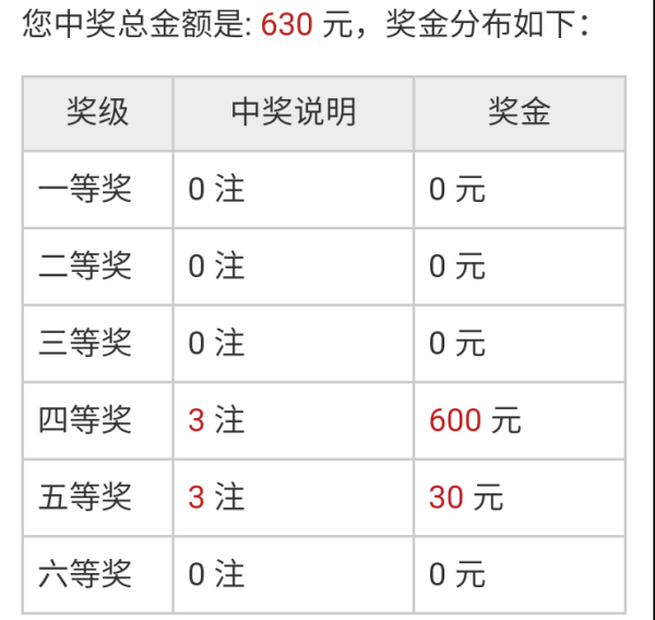 一等奖:投注号码与当期开奖号码全部相同(顺序不限,下同),即中奖。
