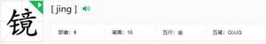 1.用来映照形象的器具:~子(亦指“眼镜”)。~台。~匣。~奁。铜~。穿衣~。