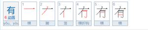 拼音:yǒu、yòu,部首:月,笔画:6,繁体:有,五笔:DEF。
