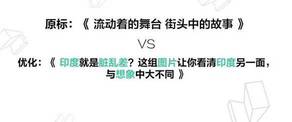 例如:《流动着的舞台,街头中的故事》,在这个文案中,我们很难提取出有意义的实体词,我们对它进行优化:《印度就是脏乱差?这组图片让你看清印度的另一面,与想象中大不同》