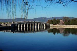 2、颐和园知春堂联:七宝栏杆千岁古,十洲烟景四时花。